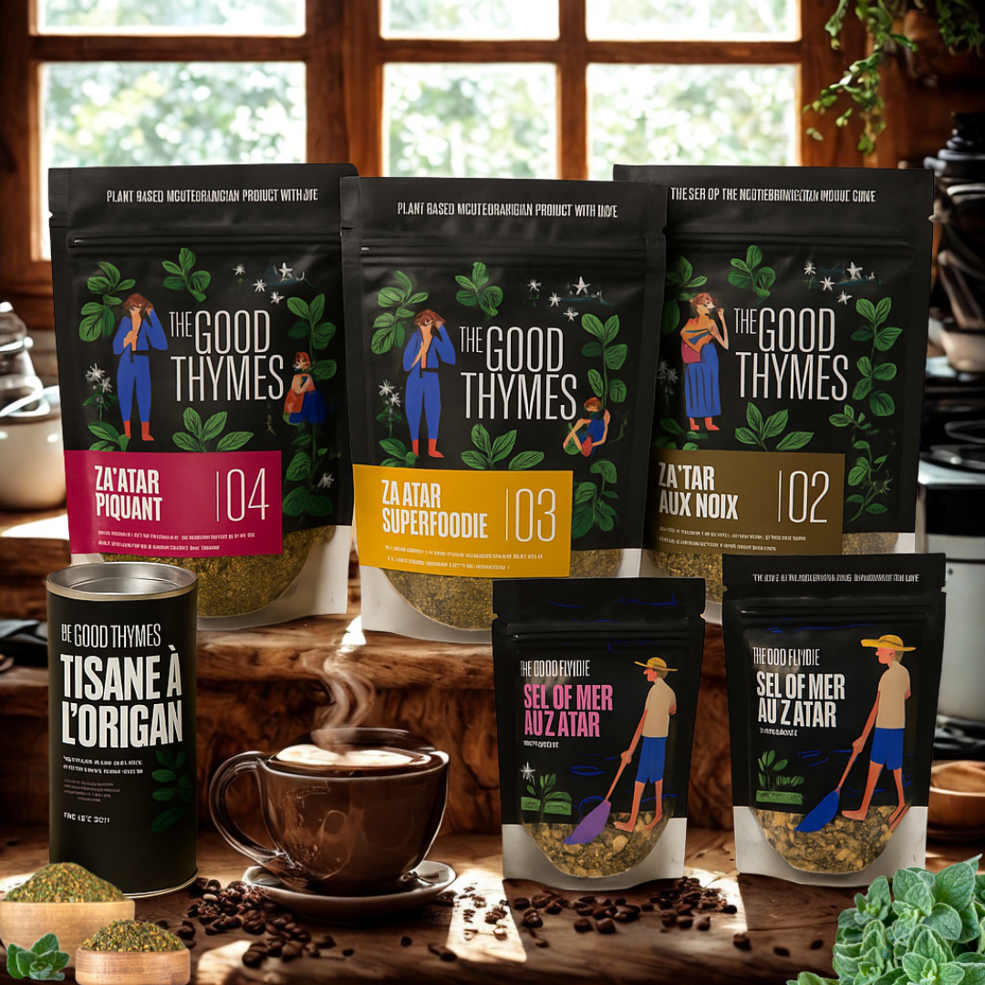 Découvrez notre gamme artisanale de produits libanais à base de zaatar (thym sauvage). Mélanges authentiques : zaatar piquant, superfoodie, aux noix, sel de mer au zaatar, et tisane à l’origan. 100% naturel, végétal, et inspiré du terroir méditerranéen. Idéal pour une cuisine saine, savoureuse et parfumée.